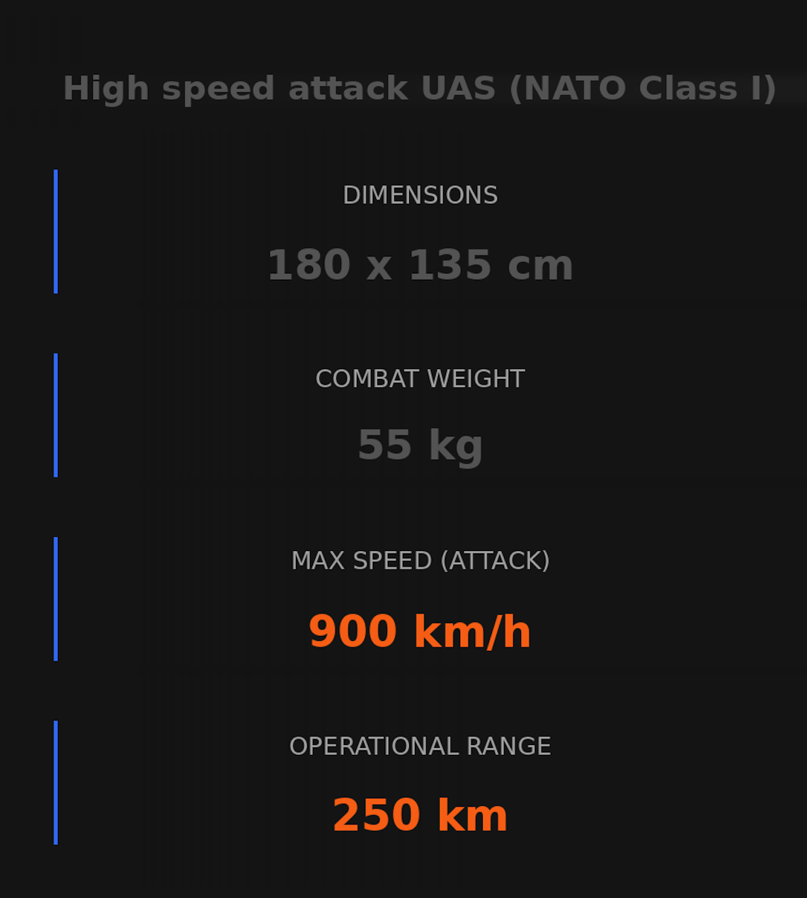 - Propulsion: Jet A-1 turbojet engine (1,400 N)